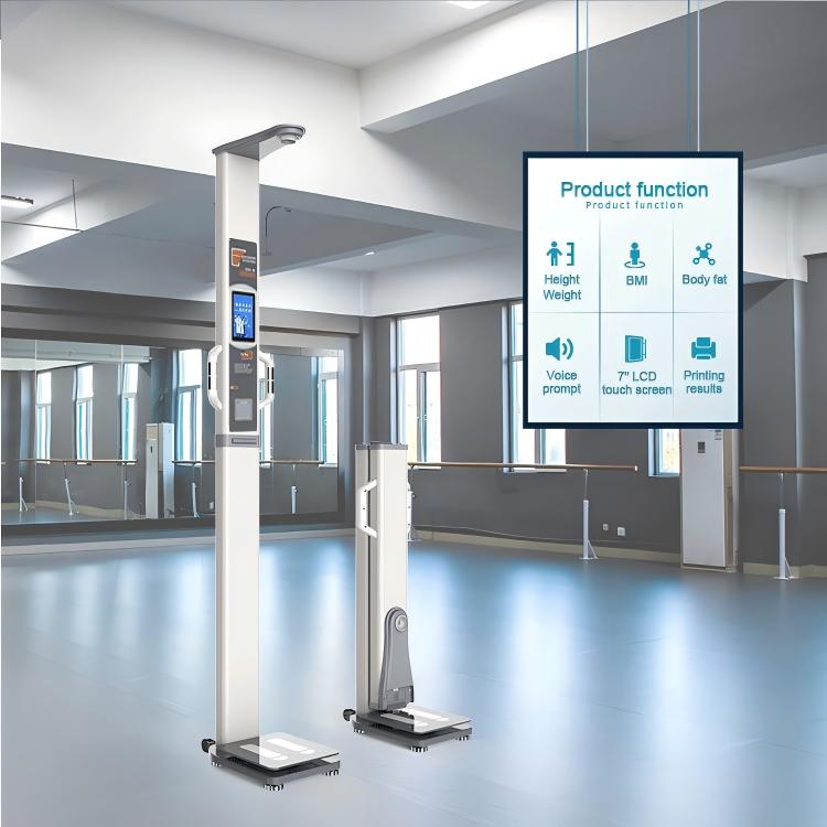 The HW-B7 Outdoor height weight fat machine is a sports testing equipment with powerful functions, easy operation and high accuracy, providing outdoor sports enthusiasts with convenient and fast sports health testing services. It can quickly and accurately test the health indicators of human height, weight, BMI, and human body composition. The operation is simple, and users only need to follow the equipment prompts to complete the test. The results are intuitive, and users can view the test results in real time through the display screen on the device. The data storage function can connect test results to various data platform systems to realize information interconnection and facilitate subsequent analysis and management.