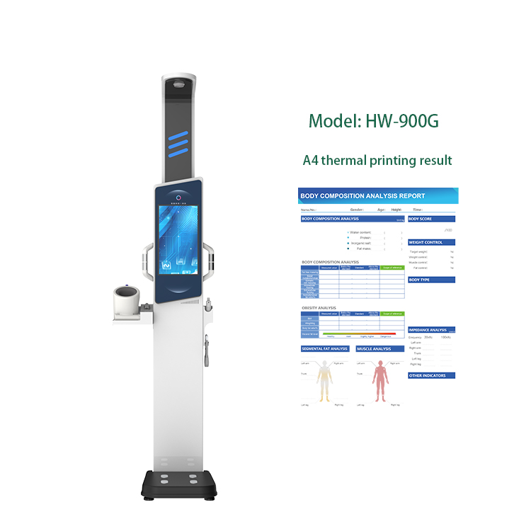 The HW-900G Medical Body Fat Scale with Bioimpedance is a comprehensive integrated health physical examination equipment based on the national public health service system. The data management system it carries can quickly collect data information, conduct data analysis through cloud computing, provide basic data for health guidance, and realize the intelligence, integration and precision of chronic disease management.
